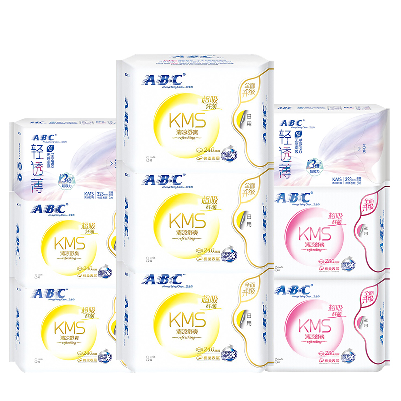 ABC棉柔日夜组合(10包70片/12包81片/9包62片/11包82片/9包57片)卫生巾套装 产品:9包62片(日用40片+夜用16片+夜用6片) |