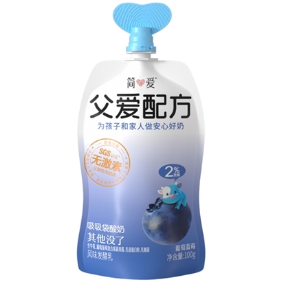 简爱 父爱配方果蔬吸吸酸奶·2%蔗糖 葡萄蓝莓风味发酵乳 100g |