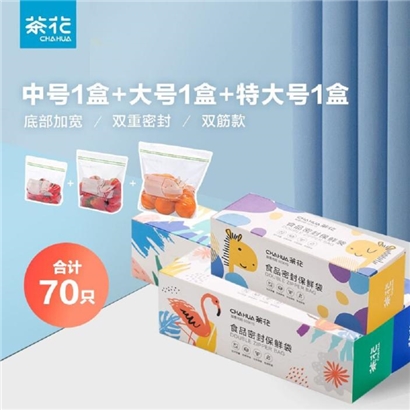 【云仓】茶花生物系列食物密封保鲜袋(中号30只+大号25只+特大号15只) |