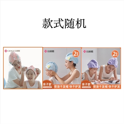 【云仓】洁丽雅干发帽亲子2条装(颜色随机) |